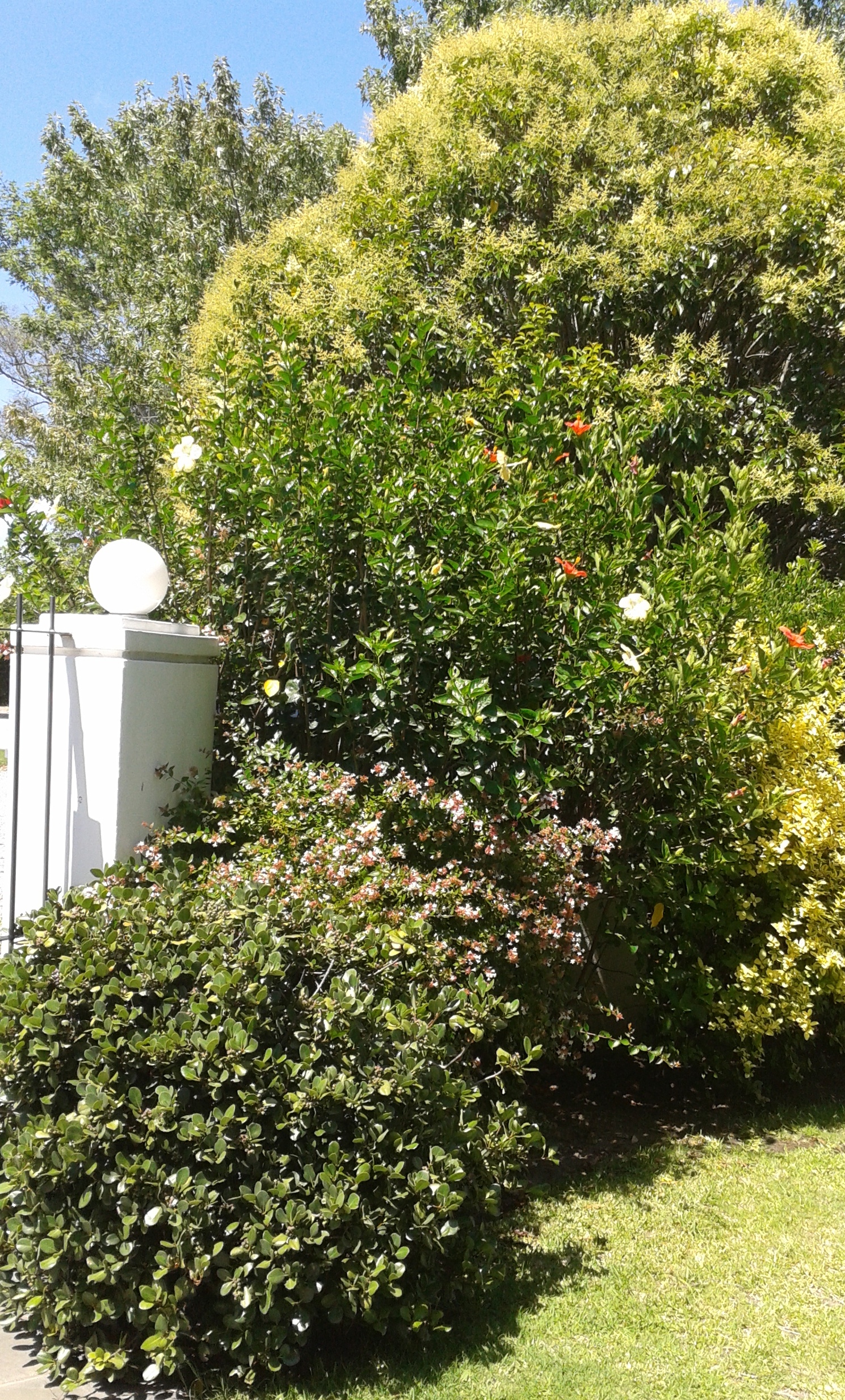 Verano desde la ventana: ibiscus, agapantus y abelias.